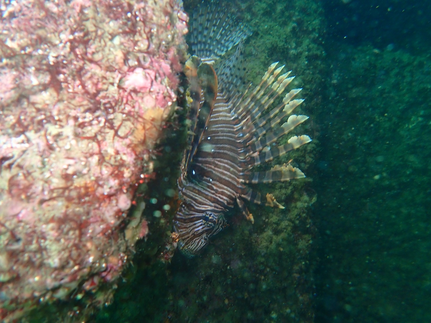 1本目はヘッドランド回りで透明度が悪いながらもネンブツダイやキンギョハナダイの群れが見れました。