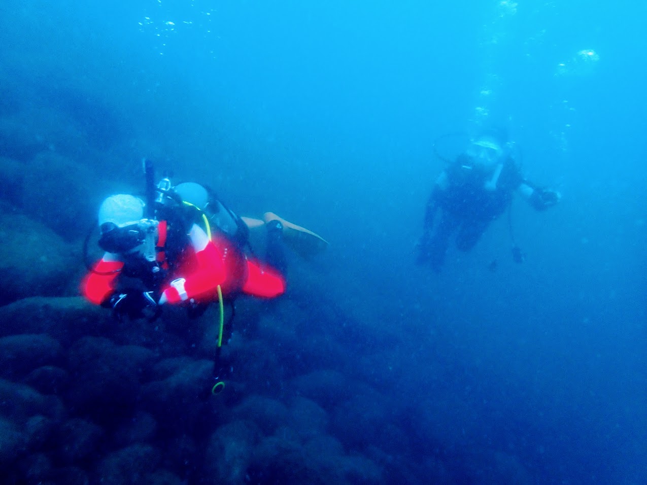 一の根」の先端の方まで行きましたが水温が急に20℃に下がり透明度早くなるのですが、寒さという代償を払わないといけない状況でした。もう少したてば深場の水温も上がるのですが